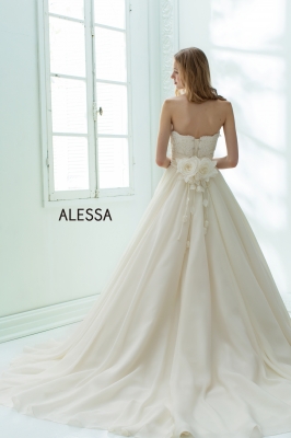 繊細な総レースが美しいセットのオフショルダースリーブと、優美なふんわりトレーンはドレスと別の仕立てとなるので、4パターンの着こなしが楽しめます。 -