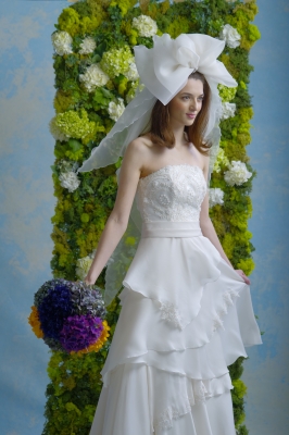 シンデレラランダムで無造作なデザインながらエレガントな高級感。ピンクアイボリーのオーガンジーがお肌を美しく見せ、大人のフェアリーを演出。アシンメトリーなフワラーモチーフがキュート。切りっぱなしのオーガンジーがオシャレ感と躍動感あふれるデザイン。