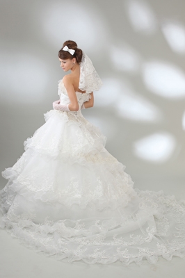 繊細な総レースが美しいセットのオフショルダースリーブと、優美なふんわりトレーンはドレスと別の仕立てとなるので、4パターンの着こなしが楽しめます。 -
