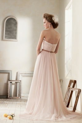 肩の力を抜いたフンワリしたパーティをお考えのかたにおすすめ、淡いピンクとブラウンのかわいらしいドレスです